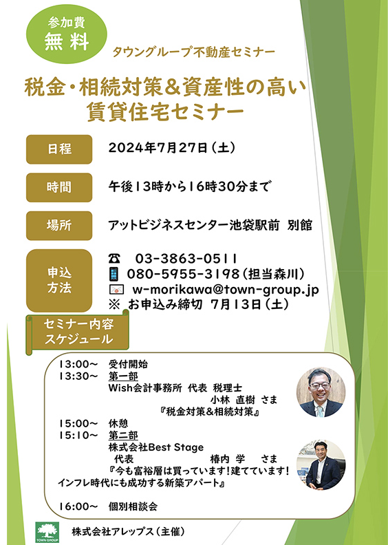 税金対策でお悩みの大家さんに、最適な節税方法をご提案してまいりますので、お気軽にご相談ください。