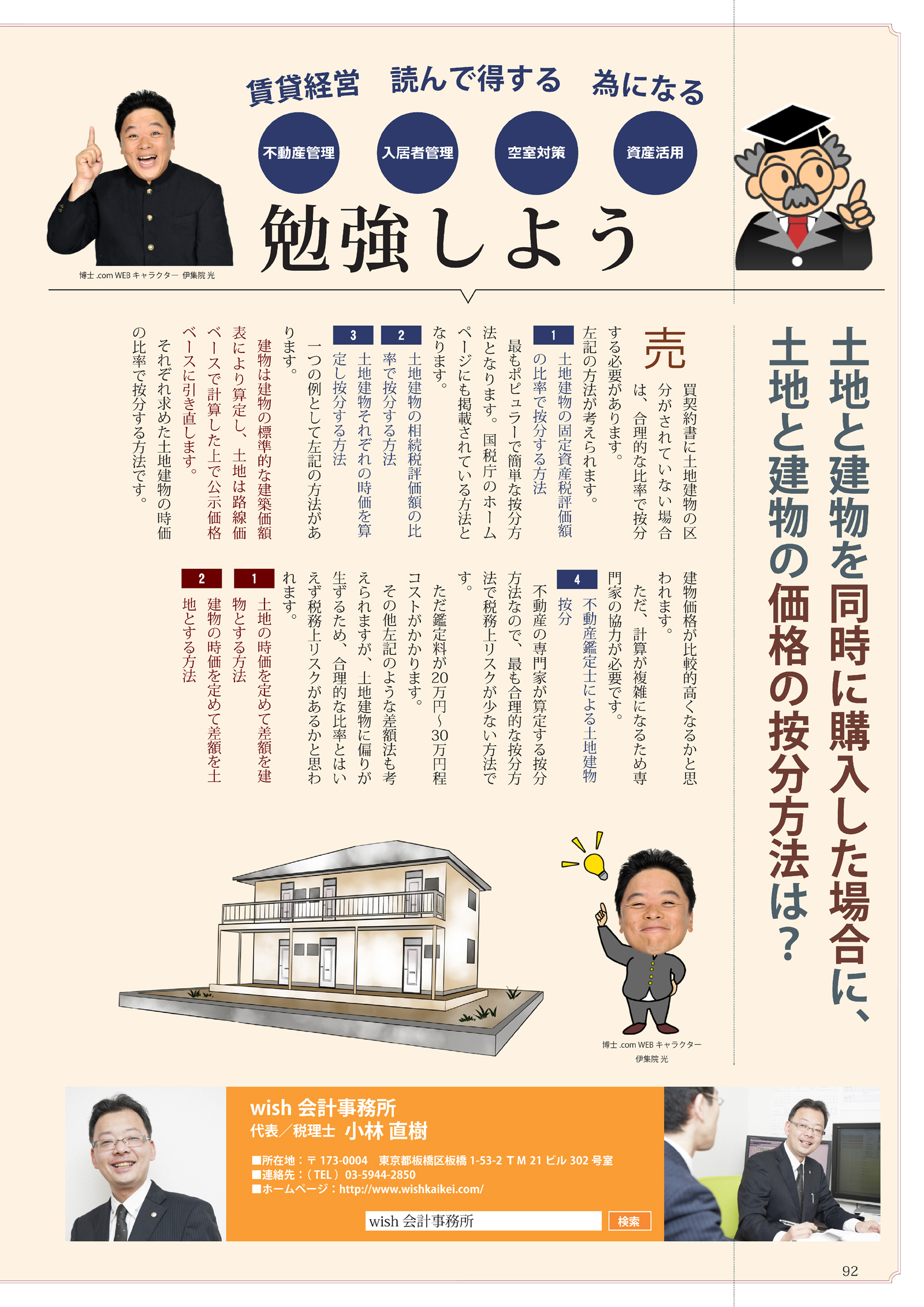 不動産賃貸経営博士の情報誌『大家倶楽部』2019冬号に、当事務所の代表 小林直樹が「土地と建物の価格の按分方法」について解説した記事が掲載されます。